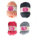 U pakiranju se nalaze 4 klupka pređe, set igala i kukica za lako završavanje rubova i spajanje.