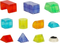 Prozirni dijelovi u mnogim oblicima i bojama potiču kreativnu gradnju od jednostavnih modela do složenih 3D konstrukcija.