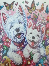 Ovaj set za dijamantno slikanje idealan je za početnike i napredne. Predtisnuto platno s motivom „Veseli psići” i čvrstim okvirom drži oblik, kamenčići prekrasno reflektiraju svjetlo, a gotova slika donijet će radost vama i vašim najmilijima. Dovoljno je slijediti legendu i lijepiti kamenčić po kamenčić – to je jednostavno, umirujuće i zabavno.
