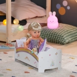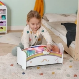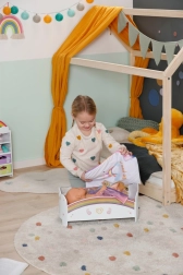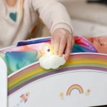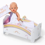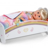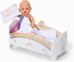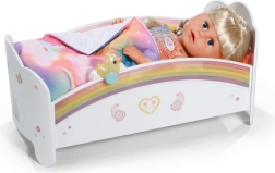 Preslatka dugina kolijevka za lutke BABY born pretvara večernje uspavljivanje u čarobni ritual. Nudi noćno svjetlo s uspavankom, obostranu posteljinu i dizajn koji se može ukrasiti naljepnicama. Tu je i tajni pretinac ispod madraca za male dragocjenosti.