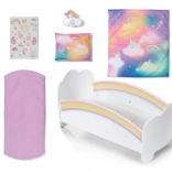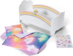 Stvorite svojoj lutki ugodno mjesto za spavanje s očaravajućom duginom kolijevkom BABY born. Kolijevka se ponosi nježnim pastelnim motivima duge i oblaka, udobnim madracem te obostranim jastučićem i dekicom za još više meke udobnosti.