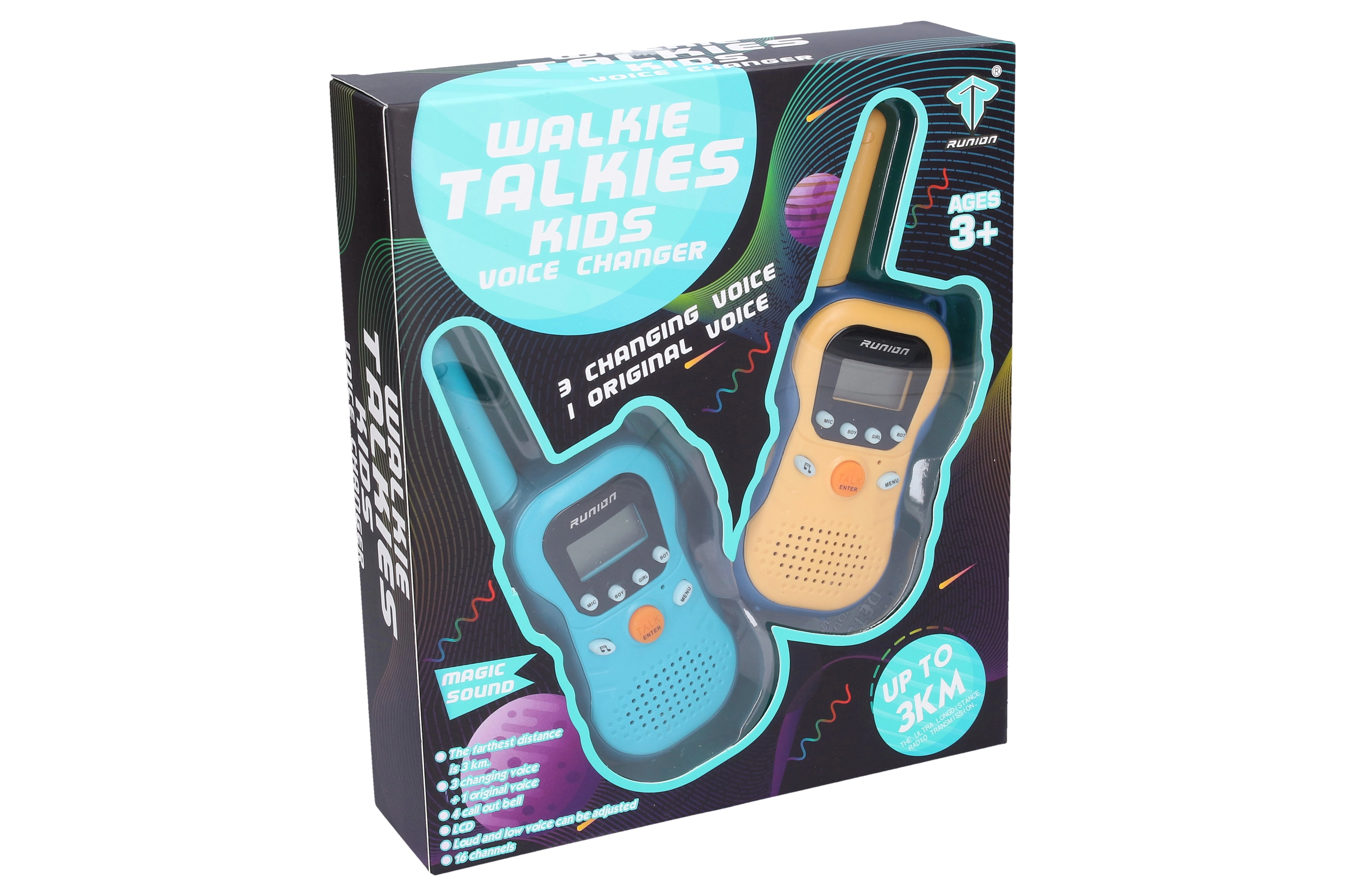 Otkrijte zabavu na otvorenom s ovim kvalitetnim dječjim walkie-talkie uređajima. Nude domet do 3 km, jednostavno upravljanje i četiri glasovna načina (normalni, muški, ženski, robotski). Zahvaljujući preglednim tipkama, prekidaču ON/OFF i podešavanju glasnoće idealni su za igre na selu, u parku i na izletima.