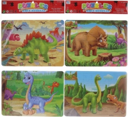 Puzzle dino, 49 dijelova. Pakiranje sadrži 2 puzzla – s jedne strane je slagalica, a s druge strane isti crno-bijeli prikaz koji možete obojiti. Dimenzije pakiranja: 48 × 25 × 0,5 cm.