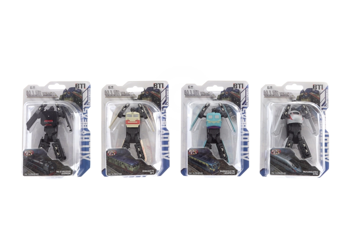 Metalni robot koji se može pretvoriti u vlak. Dimenzije pakiranja cca 14 x 19 x 5,5 cm. Veličina robota cca 10 cm. Dob 6+