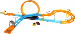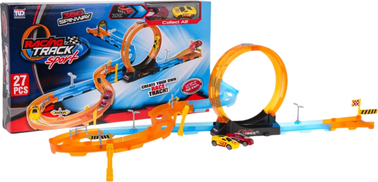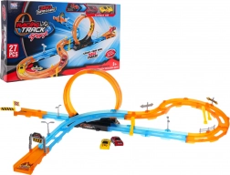 Velika trkaća staza s oštrim zavojima, loopovima i dva malena autića u setu, idealna za djecu od 3 godine. Sadrži 27 dijelova za vlastito sastavljanje.