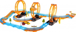 Uživajte u uzbudljivoj trkaćoj akciji s velikom trkaćom stazom koja sadrži 48 dijelova. Ovaj set uključuje tri vertikalne petlje i oštre zavoje koji osiguravaju da se auti sigurno drže na stazi zahvaljujući zaštitnim barijerama. Autići s nemotorističkim pogonom dio su paketa i garantiraju puno zabave.