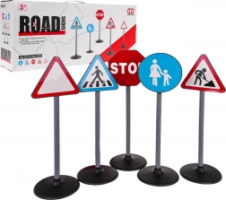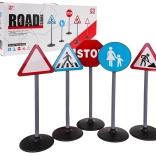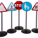 Ovaj set prometnih znakova sadrži pet različitih znakova: stop, pješački prijelaz, upozoravajući trokut, radovi na cesti i pločnik. Izrađeni su od kvalitetne plastike i realistično oblikovani s pažnjom na detalje. Dimenzijama su prilagođeni visini djeteta, što ih čini idealnom edukativnom igračkom za najmlađe.