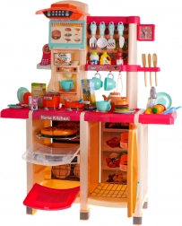 Ova kvalitetno izrađena kuhinjica u živim bojama potiče maštu i igru uloga. Interaktivna ploča nakon okretanja gumba pokreće zvukove kuhanja i prženja popraćene pozadinskim osvjetljenjem plamenika. Iz slavine stvarno teče voda, pa djeca mogu „prati” posuđe kao u pravoj kuhinji.
