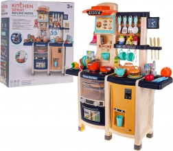 Velika dječja kuhinjica s funkcionalnom slavinom s tekućom vodom, realističnim svjetlima i zvukovima kuhanja te bogatom opremom od 65 dijelova. Sadrži pećnicu, hladnjak s dozatorom vode, perilicu posuđa, aparata za kavu, ventilatorsku ploču i telefon sa zvukovima. Kvalitetna plastika, žive boje i promišljeni detalji potiču kreativnu igru djece od 3 godine naviše.