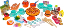 Tu je i panel s ventilatorom i efektima, telefon sa zvukovima (zvono, životinje, pjesmica) te mnogo poličica za spremanje namirnica i pribora. Set je bogato opremljen – od lonaca, tava, pribora i posuđa do pizze, povrća na čičak i drugih namirnica. Zabavu upotpunjuje tlačni lonac na baterije koji stvara mjehuriće i zvukove kuhanja; tri namirnice (riba, rak/krab, komad mesa) u njemu mijenjaju boju.