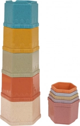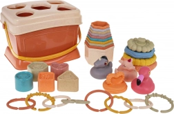 Set sadrži elemente prikladne za slaganje i razvrstavanje, što pomaže razvijati finu motoriku. Djeca mogu isprobati slaganje tornjića ili stvarati različite konstrukcije. Sve dijelove nakon igre lako je pospremiti u praktičnu kutiju, čime se djecu uči održavati red.