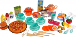 Set sadrži 65 dijelova uključujući kuhinjski pribor, namirnice, telefončić s raznim efektima i još mnogo toga.