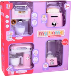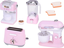 Set malih kućanskih aparata donosi u vašu dječju kuhinju eleganciju i funkcionalnost. Izrađen od kvalitetne plastike s detaljima koji savršeno oponašaju stvarne uređaje. Nježno ružičasta boja s bijelim i kromiranim dodacima daje igračkama šarm i stil.