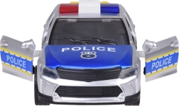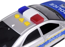Realistični policijski auto za male čuvare reda donosi svjetlosne i zvukovne efekte, otvoriva prednja vrata i gumene protuklizne kotače. Tri gumba aktiviraju sirene, trubu i zvuk pokretanja motora. Kompaktne dimenzije 24 × 12 × 9 cm, napajanje 2× AAA (u pakiranju).