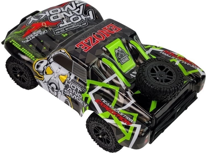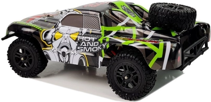 Brzo terensko RC auto u mjerilu 1:18 s pogonom na sva 4 kotača, brzinom do 40 km/h i neovisnim ovjesom kotača za glatku vožnju po terenu. Ergonomski 2,4 GHz upravljač osigurava precizno upravljanje do 50 m. Izdržljiva konstrukcija i velika Li-ion baterija 7,4 V 850 mAh za zabavu u vožnji na svakoj podlozi.