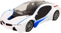 Ovaj sjajan auto na daljinsko upravljanje izgleda kao pravi trkaći automobil. Opremljen je učinkovitim svjetlosnim efektima koji svakoj vožnji dodaju autentičnost. Veliki automobil lako se kontrolira zahvaljujući volanu s antenom i odličnim pedalama koje simuliraju gas i kočnicu. Gumene gume osiguravaju tihi rad i bolju upravljivost.