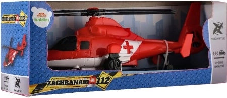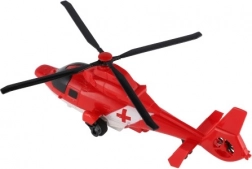Ovaj plastični spasilački helikopter u atraktivnoj crvenoj boji s upadljivim medicinskim križem odličan je izbor za djecu koja vole akciju i spasilačke misije. Pogon na povratno navijanje omogućuje helikopteru brzo kretanje i zavrtanje elise, pa igra djeluje još realističnije.