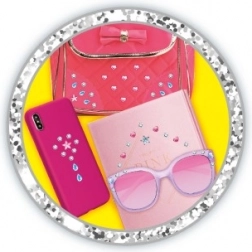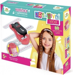 Pretvorite obične predmete u originalne komade! Set s aplikatorom i 80 svjetlucavih kamenčića omogućuje djeci jednostavno i sigurno lijepljenje ukrasa u kosu i na razne glatke površine. Zahvaljujući samoljepljivom sloju aplikacija je brza i bez nereda.