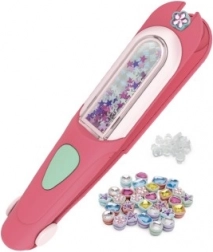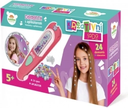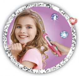 Ovaj zabavni set omogućuje djeci da stvore originalne ukrase za kosu bez ljepila i nereda. Postupak je jednostavan: umetnite dijamant u gornji dio aplikatora, u donji dio špangicu, prislonite nježan pramen kose i pritisnite – dijamant će ostati pričvršćen pomoću špangice. Jednostavno, brzo i efektno.