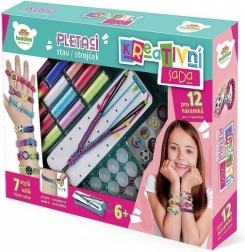 Otkrijte zabavan kreativni set za male dizajnere s kojim možete izraditi do 12 originalnih narukvica. Praktični tkalački stan drži niti pregledno, dok pređa, spojni gumbići i naljepnice omogućuju dotjerati izgled do savršenstva. Birajte među 7 stilova čvorova i izradite jedinstvene šarene narukvice pune mašte. Pogodno za djecu od 6 godina.