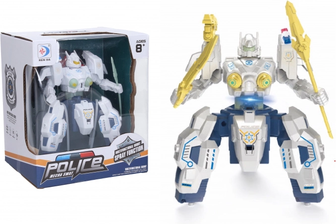 Zabavan i akcijski policijski RC robot visine 19 cm donosi dimne efekte, jednostavno upravljanje polugama i USB punjenje. Idealna igračka za djecu koja vole robote, svjetla i akciju – dostupno u dvoje boja.