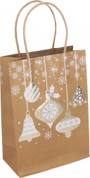 Ova čvrsta poklon-vrećica s božićnim motivom idealna je za pakiranje manjih do srednje velikih darova. Zahvaljujući kvalitetnoj izradi i praktičnim ručkama, prijenos je udoban i siguran. Stilski dizajn podcrtava svečani ugođaj i razveselit će već pri predaji.