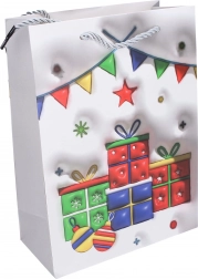 Stilna božićna poklon-vrećica veličine S idealna je za manje darove. Nudi čvrstu izradu, praktične dimenzije 18 × 24 × 8,5 cm i blagdanske motive u 4 varijante.