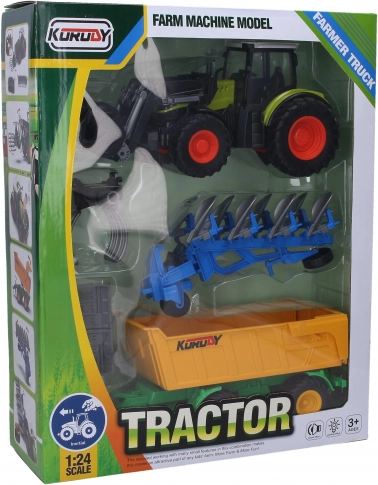 Ovaj traktor utovarivač opremljen je s tri priključna uređaja - jednim sprijeda i dva straga, što povećava mogućnosti igre. Svjetlosne i zvučne efekte aktivirate pritiskom na prednji dio traktora, što donosi realistične doživljaje igre.