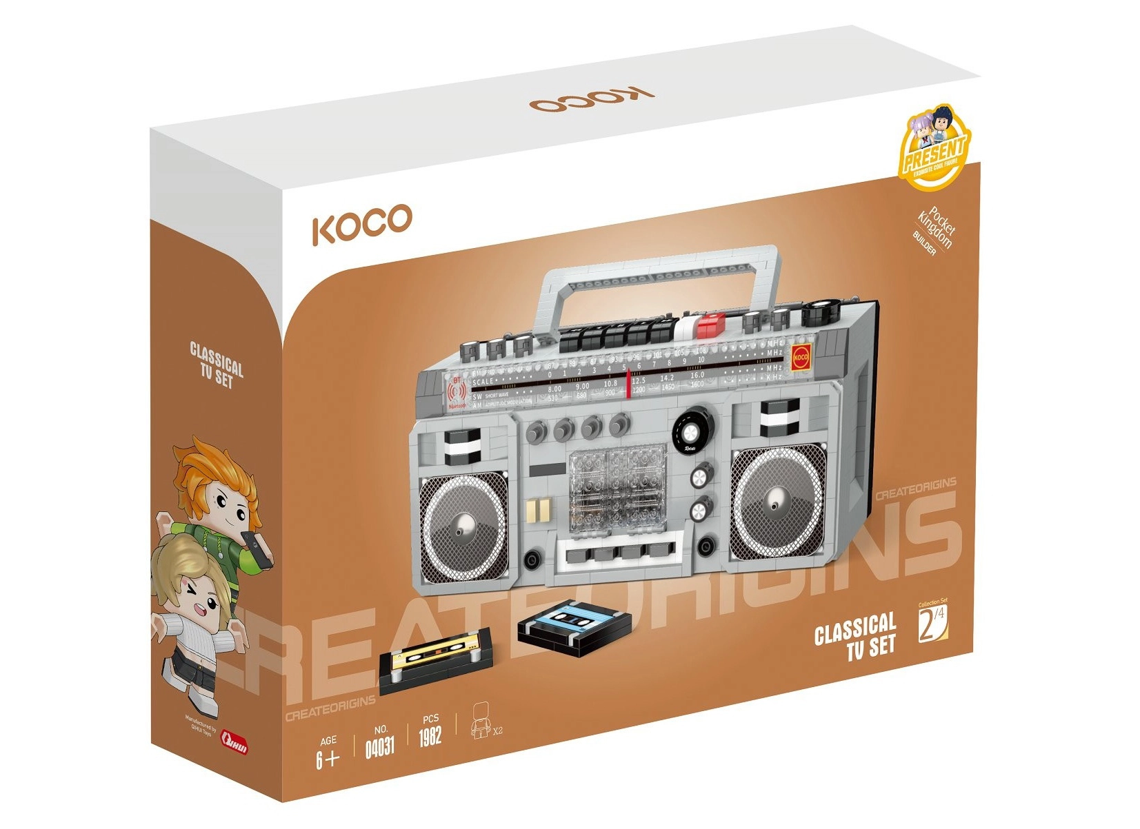 Vratite se u retro svijet s realističnim konstrukcijskim setom kasetofona marke KOCO. Set sadrži 1982 dijela, 2 figurice i ilustrirani priručnik za jednostavno sastavljanje. Kompaktne dimenzije 18,5 × 7,5 × 14,5 cm čine ga odličnim kolekcionarskim komadom i stilskom dekoracijom.