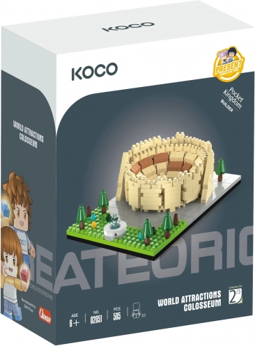 Građevni set KOCO Kolosej idealan je za sve ljubitelje povijesti, arhitekture i pametne zabave. Od 505 pažljivo dizajniranih dijelova sastavit ćete kompaktan model legendarne znamenitosti s realističnim detaljima. Zahvaljujući slikovnom priručniku, slaganje je pregledno i zabavno čak i za početnike.