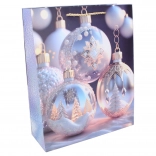 Stilna božićna poklon-vrećica veličine M, dimenzija 26 × 32 × 10 cm, idealna je za elegantno pakiranje darova. Nudi čvrstu izradu, praktične dimenzije i blagdanski dizajn u 4 varijante za svaku prigodu.