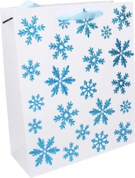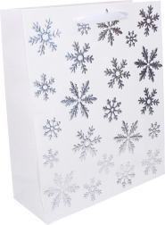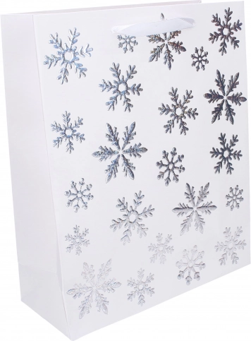 Stilska božićna poklon-vrećica veličine L, dimenzija 31 × 42 × 12 cm. Idealna za pakiranje većih darova, s čvrstim ručkama i kvalitetnim papirom za jednostavno i elegantno darivanje. Dostupne su 4 varijante božićnih motiva.