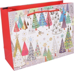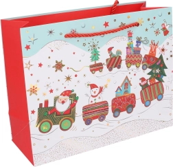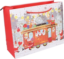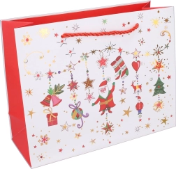 Stilska božićna poklon-vrećica veličine M (32 × 26 × 10 cm) za elegantno pakiranje darova. Idealna za knjige, kozmetiku ili manje kutije. Dostupna u 4 varijante s božićnim motivima i s čvrstim ručkama za udobno nošenje.