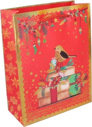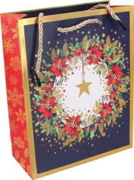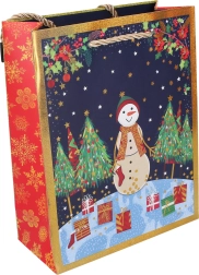 Stilna božićna poklon-vrećica veličine L s dimenzijama 42 × 31 × 12 cm idealna je za pakiranje većih poklona. Nudi 4 blagdanska dizajna, čvrstu izradu i udobnu ručku za lako prenošenje.