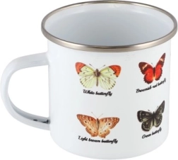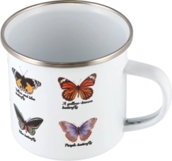Oživite svoje trenutke uz kavu ili čaj emajliranom šalicom s prekrasnim dizajnom leptira. Ova šalica spaja estetiku i funkcionalnost zahvaljujući kvalitetnoj emajliranoj površini i metalnom obrubu.