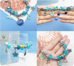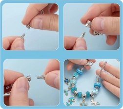 Ovaj kreativni set nudi bogat izbor komponenti za jednostavno nizanje i slaganje vlastitih modnih dodataka. Metalne narukvice, podesivi lančići i voštani konopci nadopunjeni dekorativnim perlicama i privjescima omogućuju izradu nakita točno prema vašoj mašti – od morskih motiva do srca i cvijeća.