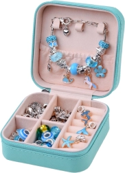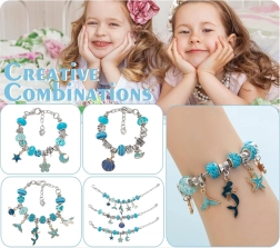 Izradite jedinstveni nakit s ovim kompletnim setom u elegantnoj kutiji za nakit. U njoj ćete pronaći sve za izradu originalnih narukvica i ogrlice – od metalnih lančića preko voštanih konopaca do ukrasnih perlica i privjesaka. Idealno za kreativnu djecu i odrasle koji vole ručni rad i žele imati unikatan nakit u plavo‑srebrnom stilu.