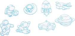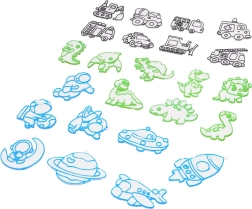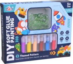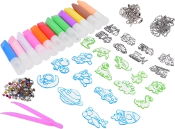 U setu se nalaze omiljeni motivi iz kategorija svemir, pretpovijest i automobili, koji će se svidjeti i dječacima i djevojčicama. Stvaranje razvija finu motoriku, strpljenje i kreativnost, a djeca dobivaju vlastite originalne uratke na koje s pravom mogu biti ponosna.