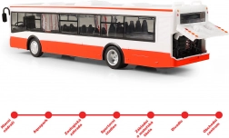 Ovaj detaljno izrađen plastični autobus duljine 28 cm oživjet će svaku dječju vožnju. Pri otvaranju vrata čuju se najave stajališta na češkom, a pri zatvaranju dodatno trepere prednja svjetla. Zahvaljujući povratnom navijanju autobus se sam pokreće i donosi puno akcijske zabave.