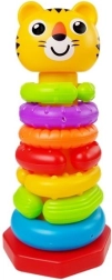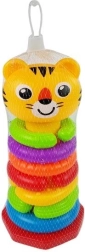 Ova dugina slagalica piramida idealna je za prvo istraživanje svijeta. Djeca mogu navlačiti prstenove u različitim bojama i oblicima, slagati, rušiti i isprobavati nove kombinacije – igra bez pravila koja prirodno razvija kreativnost i logičko razmišljanje. Najmanja čašica s printom tigrića daje igrački presladak izgled i poziva na igru.