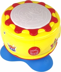Plastični bubanj opremljen je regulacijom glasnoće i omogućava sviranje bez dodatnih zvučnih efekata. Idealan je za razvoj koordinacije ruku i očiju te fine motorike, što pomaže kasnijem učenju pisanja i logičkog razmišljanja.