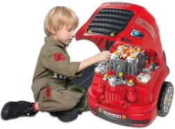 Kamion s otvarajućom haubom omogućuje djeci istraživanje mehaničkih elemenata poput svjećica i ulja, čime se povećava njihovo tehničko znanje.