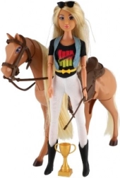 Lutka ima pokretne zglobove za prirodno poziranje i lako smještanje u sedlo. U kompletu su jahaća kaciga i odjeća, zahvaljujući kojima je spremna krenuti na vožnju i na natjecanja.