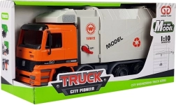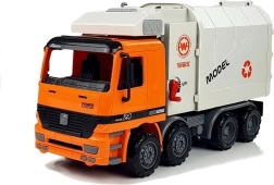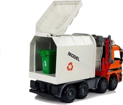 Narančasto‑bijeli smetarski kamion za male vozače nudi sate zabave. Zahvaljujući trenjnom pogonu dovoljno ga je pogurnuti, ima otvarajući stražnji dio, profilirane kotače i izrađen je od izdržljive, netoksične plastike s CE certifikatom. U kompletu je i kanta za smeće, idealno za djecu od 3 godine.