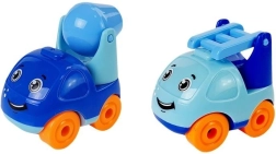Paket uključuje i 2 plastična autića s simpatičnim izrazima – miješalicu betona i vatrogasno vozilo s ljestvama – te set dodataka za izgradnju male “benzinske” kod kuće. Djeca lako slažu vlastite scene s prometnim semaforom, znakovima i barijerama.