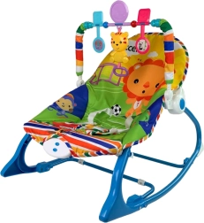 Plava dječja ležaljka s motivom tigrića privući će svaku bebu i pružiti sigurno i ugodno mjesto za odmor i igru. Prirodno nježno ljuljanje umiruje bebu i podsjeća je na poznati ritam iz trbuha, dok vibracije i zvučni efekti pomažu pri uspavljivanju. Zahvaljujući univerzalnoj upotrebi poslužit će kao ležaljka za najmlađe i kao klasično sjedalo za starije dijete.