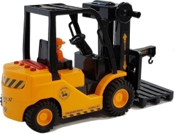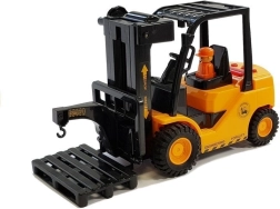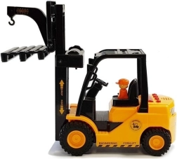 Ovaj detaljno izrađen viljuškar približava djeci svijet industrijske tehnike. Pomoću preciznog okretnog regulatora lako je podizati i spuštati vilice, dok kuka omogućuje prenošenje raznovrsnog tereta. Igra je istodobno zabavna i edukativna – potiče finu motoriku, koordinaciju oko-ruka i maštu.