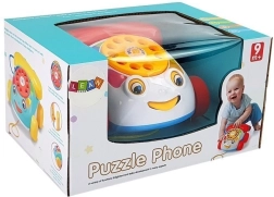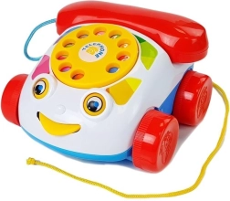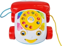 Igračka telefon ima okretni brojčanik s brojevima koji pri kretanju proizvodi zujavi, zvonki zvuk. Osim toga, ima kotačiće, a tijekom igre, pri povlačenju, pomiču se oči i jezik telefona. Dijete igrom poboljšava funkciju ruku, posebno manuelne vještine. Različite boje privlače pogled, pa se dijete uči razlikovati boje. Dodatna prednost je što se pritiskom na gumb na slušalici čuje glas klauna.