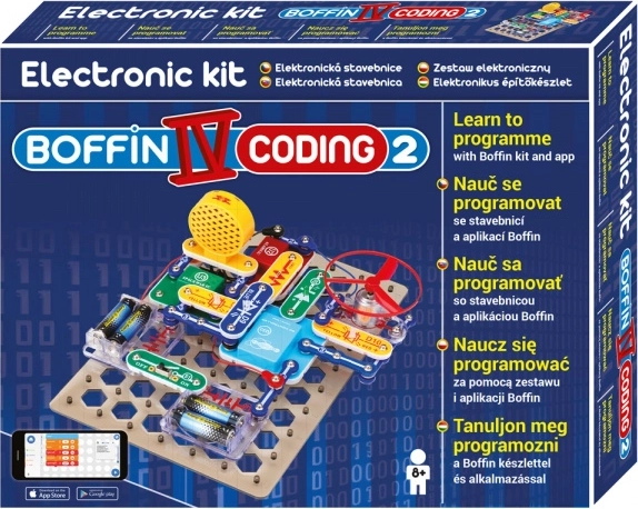 Elektronički konstruktorski set Boffin IV Coding idealan je izbor za djecu i odrasle koji žele usvojiti osnove elektronike i pritom naučiti programirati. Dijelove jednostavno zakvačite na ploču i u trenu sastavite funkcionalne projekte – od svjetlosnih efekata i zvučnih sklopova do letećeg propelera i ventilatora. Uparivanjem preko modula U33 s besplatnom aplikacijom Boffin (Google Play / App Store) dobivate mogućnost projekte upravljati i programirati na hrvatskom.