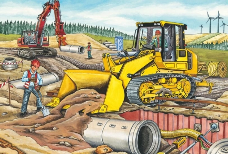 Otkrijte svijet bagera, dizalica i kamiona na tri različite slike. Set 3×48 dijelova potiče koncentraciju, finu motoriku i donosi mnogo zabave pri svakom slaganju. Precizni izrezi i čvrsti dijelovi odlično se spajaju i drže.